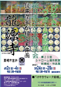 | ●2021年3月24日(水)~ 28日(日) 「けやきウォーク前橋」 筑井孝子・前橋教室・大人の生徒 午前10時から午後7時 ●2021年4月2日(金)~ 4日(日) 「龍源寺」 午前10時から午後5時まで 年に一回のお披露目です。すばらしい 作品をごらんください。 本はこちらから買えます |